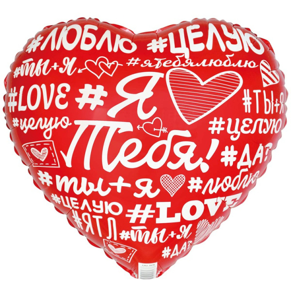 Фольгированный Шар (18"/46 см) Сердце, Я Люблю Тебя! Хештеги, 1 шт. в уп.