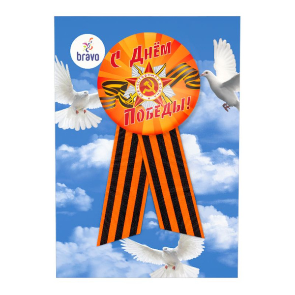 Значок с георгиевской лентой "С Днём Победы" можно удобно закрепить с помощью булавки.